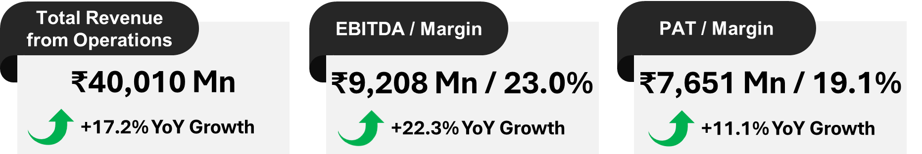 - Total Revenue from Operations was ₹40,010 million, with YoY growth of 17.2%.